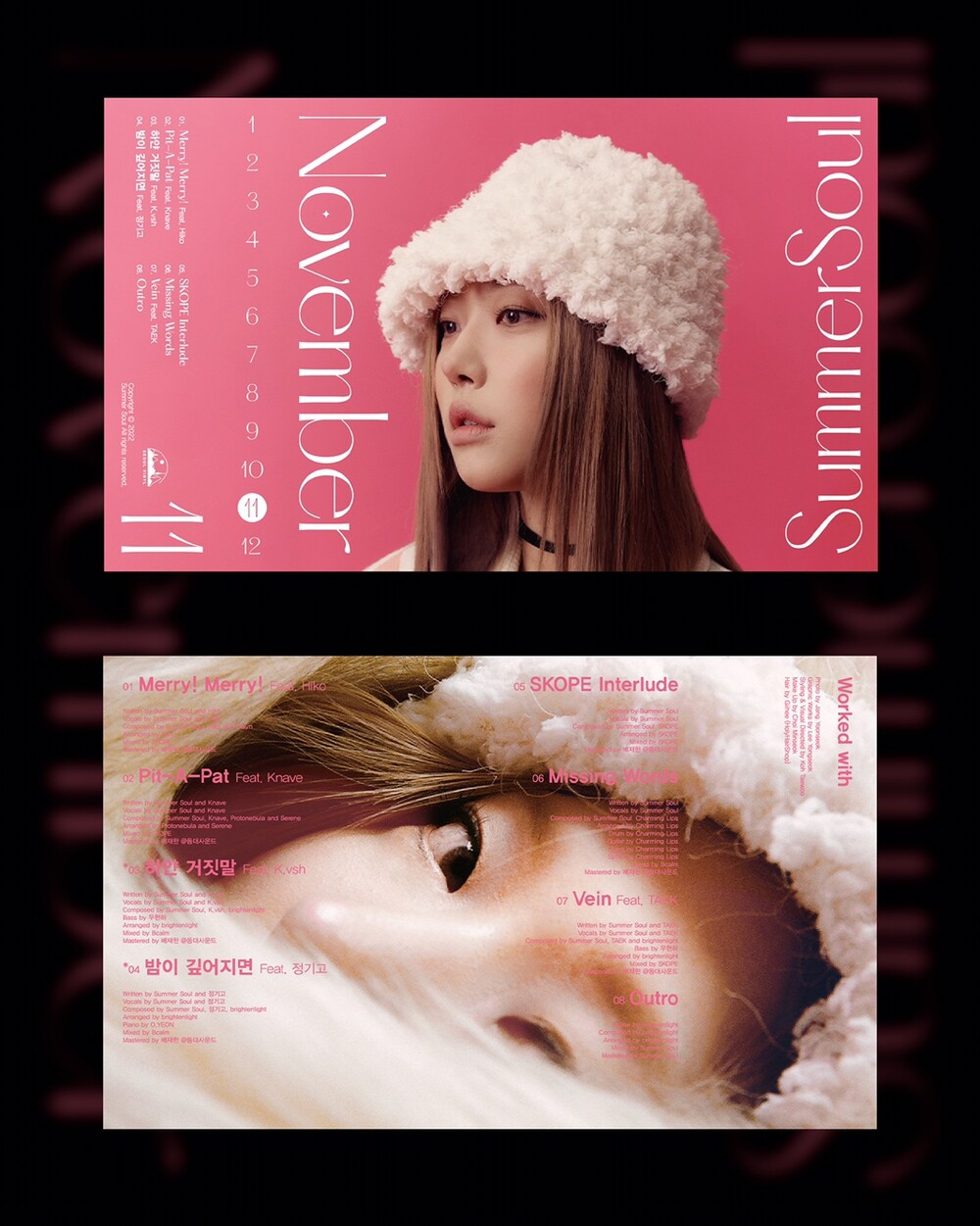 이번 EP 앨범 [November]은 수록곡마다의 겨울 이야기를 다양하고 풍성한 사운드로 풀어낸다. 썸머소울만의 감각적인 목소리와 함께 Hiko, Knave, Kvsh, 정기고 그리고 TAEK 등 개성 있는 보컬 피쳐링이 더해진 이번 앨범은 최초 카세트테이프로 발매된다.